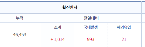 현재 1014명의 확진자가 발생하였습니다. 계속해서 천명이 넘는 확진자가 나오고 있는 상황입니다. 겨울철 감기 증상과 코로나 바이러스로 인한 증상이 유사합니다. 이를 잘 알지 못하는 사람은 이에 대해 걱정하고 두려울 수밖에 없습니다.