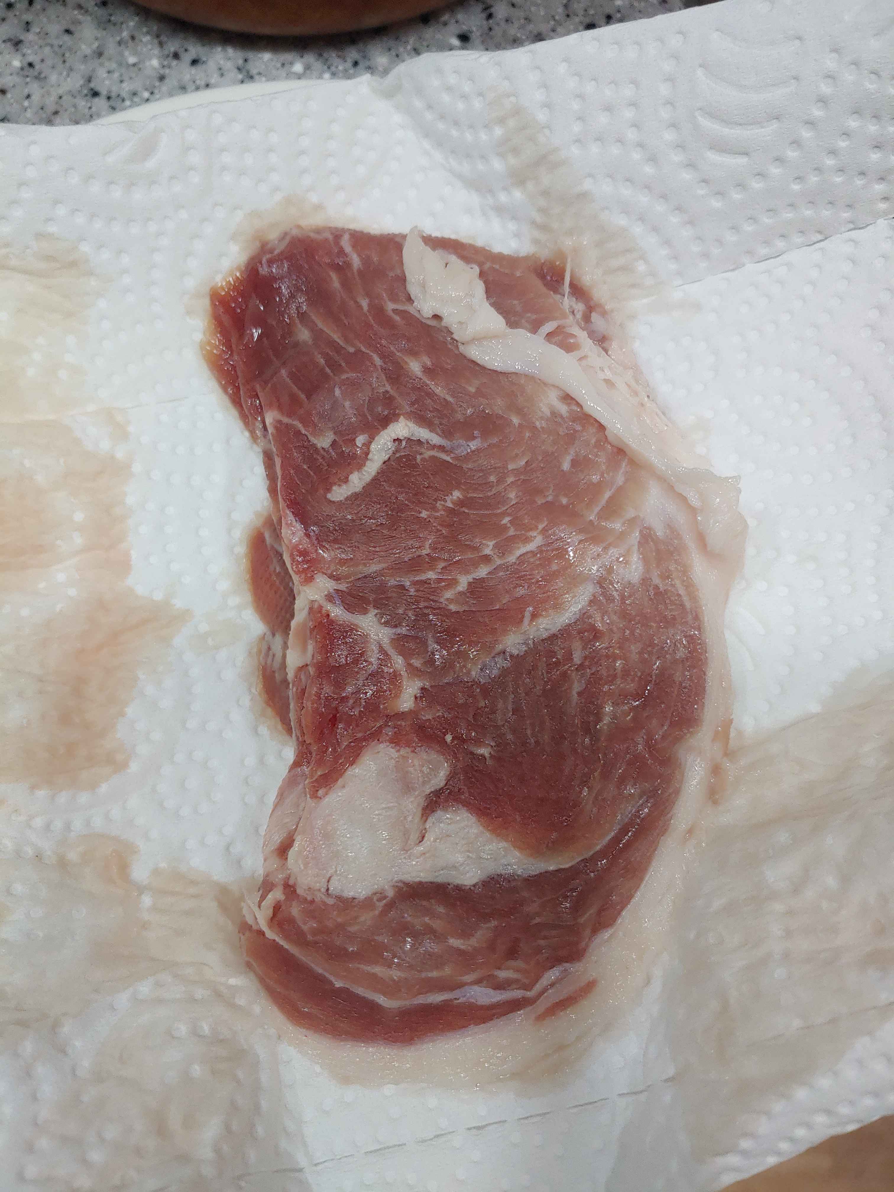 고기는 키친타월을 이용해 핏기를 뺐다. 고기가 매우 얇다. 사실 저번 스파게티처럼 재료는 가격에 비해 약간 부실하다고 느껴졌다. 많은 것을 바라지 않았지만 약간 실망스럽다.