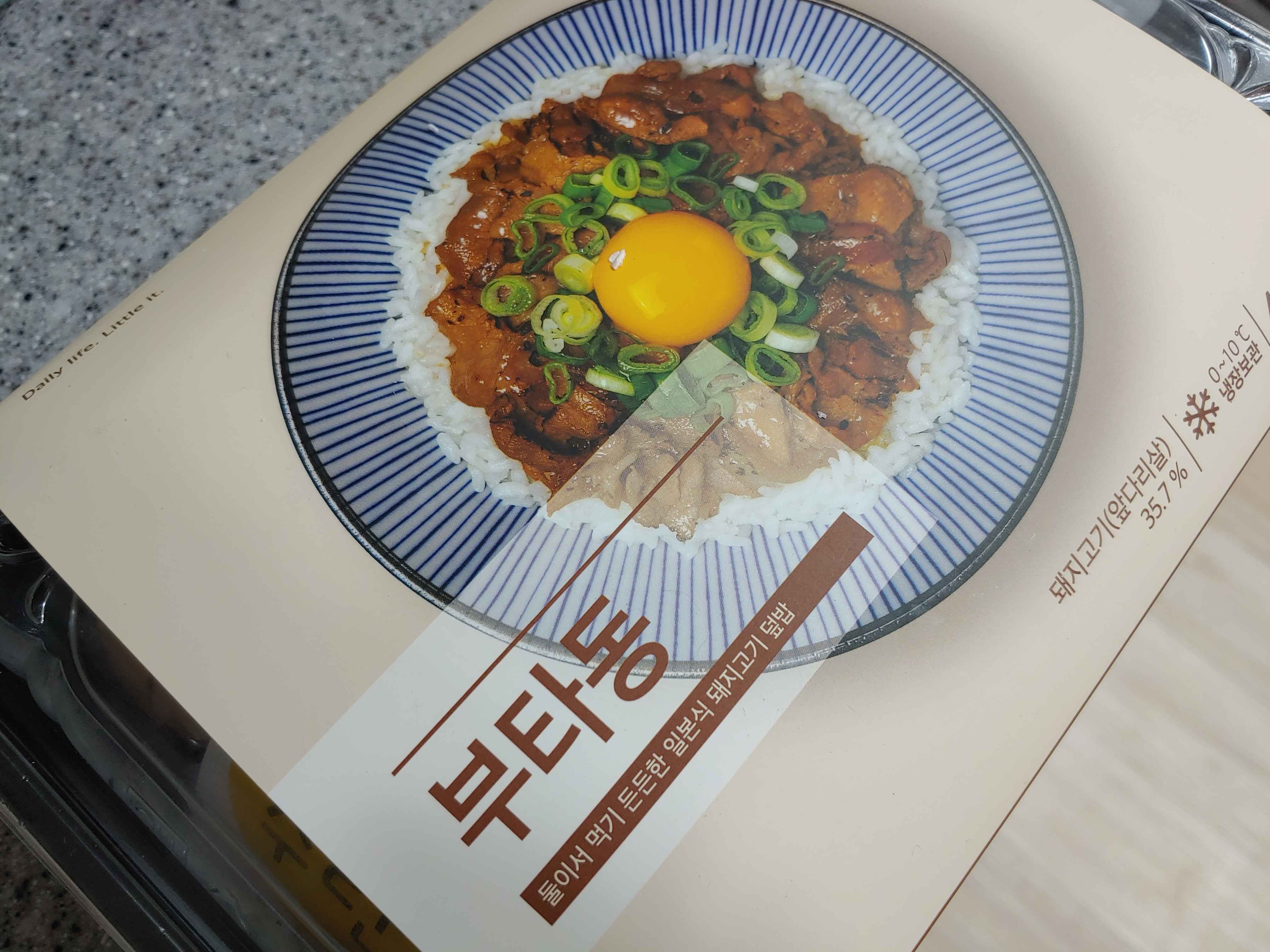 오늘 만들어 먹을 부타동이다. 어디 저번에 만들어먹었던 스파게티와 같은 회사 제품이다. 사는 김에 같이 구매했다. 유통기한이 만료되기 하루 전에 부타동을 구매했던 것이 기억나 부랴부랴 해 먹게 되었다.