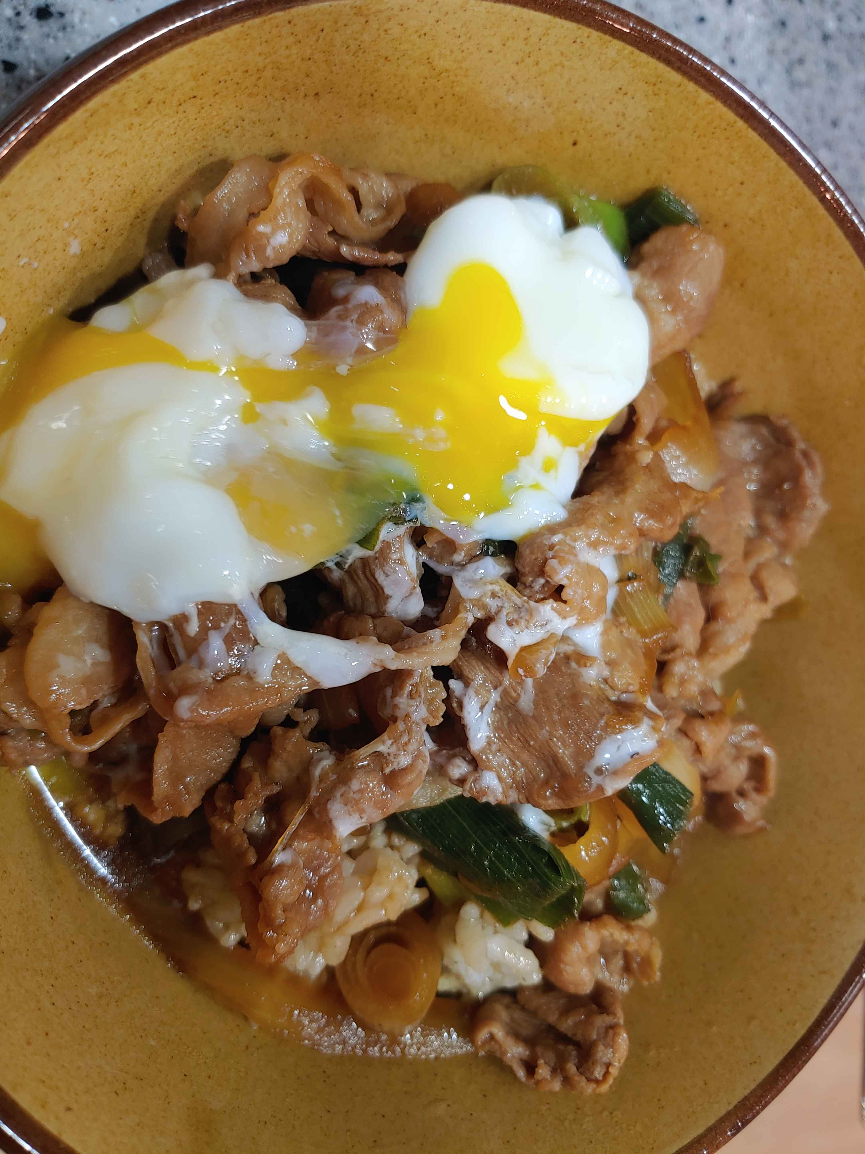재료는 별거 없다. 고기, 수란, 양파, 파, 간장소스이다. 재료가 많지 않고, 조리시간도 짧다. 매우 빠르게 요리를 해서 먹을 수 있다. 이게 별거 아닌 거 같지만 나 같은 요리 못하는 사람에게는 매우 중요한 요소다. 쉽고 빠르게 요리를 해 먹는다, 이것만큼 동기부여를 해주는 것이 없다.