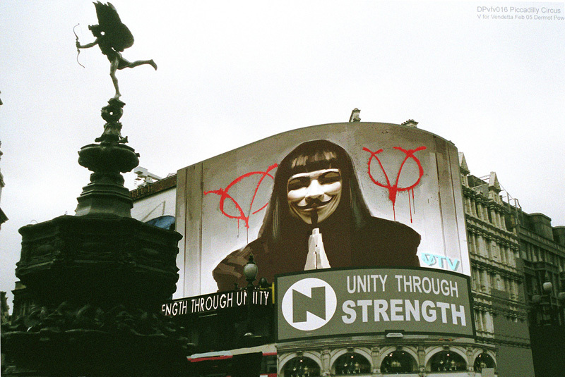 V for Vendentta, 브이 포 벤데타도 거대한 집단의 통제 아래 놓인 억압된 사회를 그리고 있다. 그리고 이런 사회체제에 대한 불만과 분노로 가득 찬 인물 V를 통해 사회의 모순과 악행을 여과 없이 드러낸다.