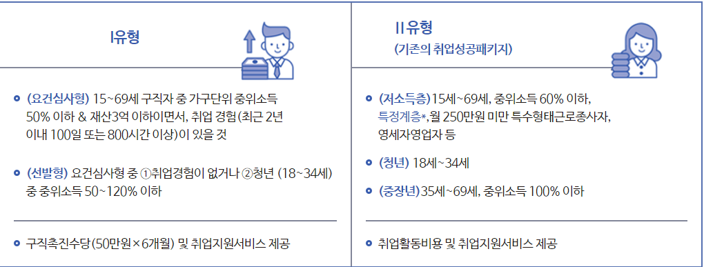 2 유형에 참여하는 분에게는 구직활동을 할 때 발생할 수 있는 비용의 일부를 취업활동비용으로 지원한다고 합니다.
