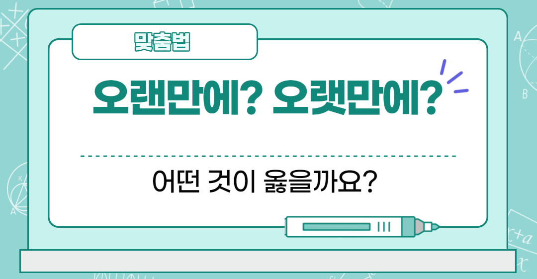 오랜만에? 오랫만에? 문자나 카톡을 하다 보면 헷갈리기 쉬운 말입니다. 과연 어떤 것이 옳은 표현일까요?