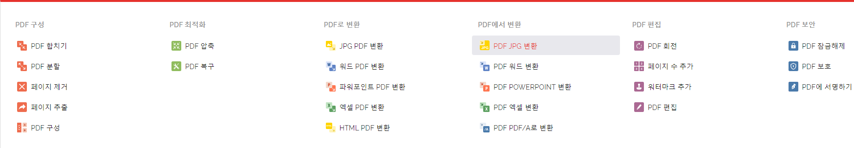가운데 pdf변환기를 이용하면 쉽게 jpg로 바꿀 수 있습니다. 물론 반대의 작업도 가능합니다. 이외에도 여러가지 기능이 있으니 찬찬히 둘러보면서 더 이용할 수 있는 게 무엇인지 한번 찾아보시면 될 것 같습니다.