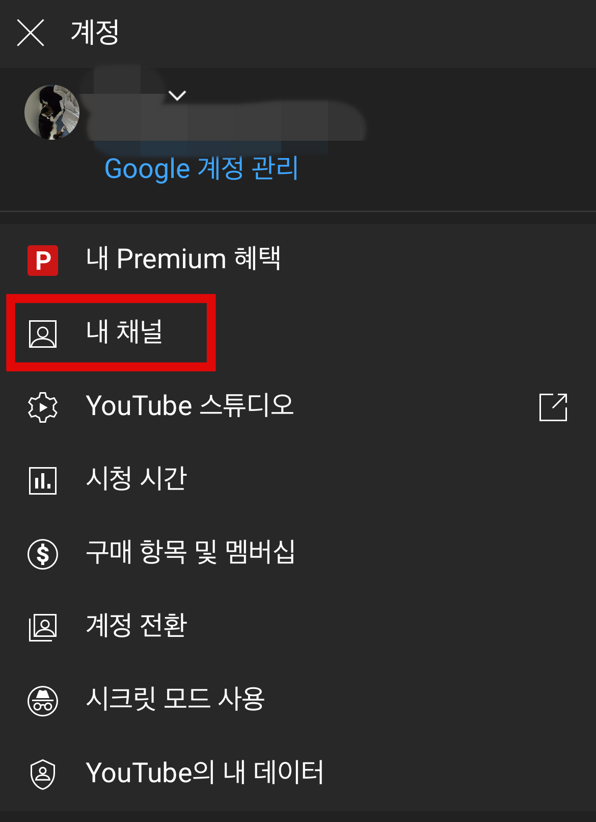 2. 두 번째 있는 내 채널을 클릭하여 들어가 줍니다
