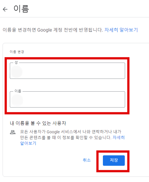 5. 원하는 이름을 입력한 후, 저장을 눌러줍니다. 이제 이름이 바뀌었습니다.