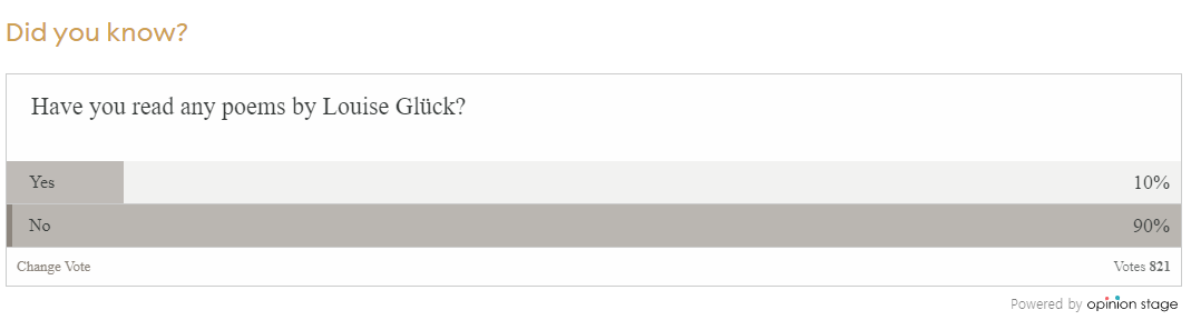 제가 재미있는 것을 하나 발견했는데요, 노벨 문학상 수상을 발표하는 홈페이지에 루이즈 글릭의 시를 읽어 봤는지 묻고 있는 설문입니다.