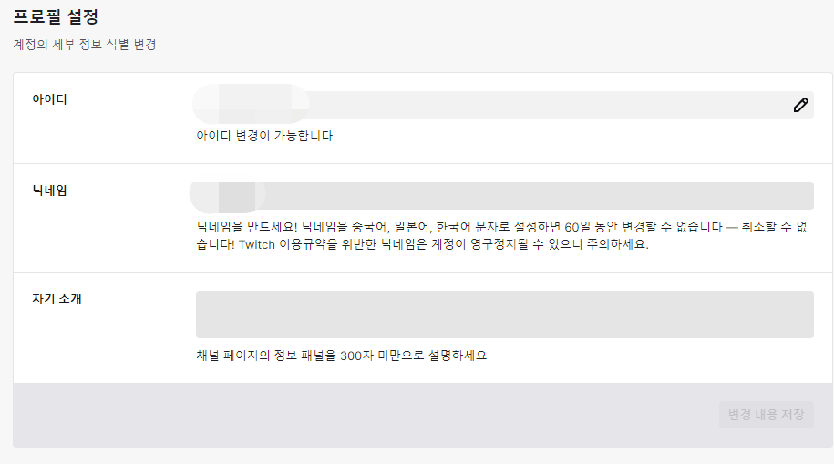 트위치 닉네임 변경을 해봅시다