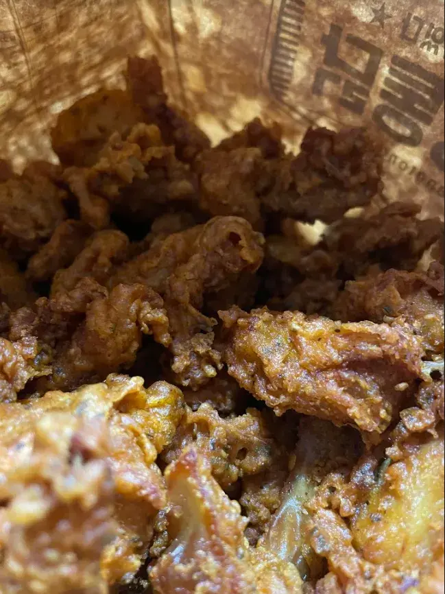 일부만 꺼냈는데도 봉투에는 많은 양의 치킨이 남아있었습니다.