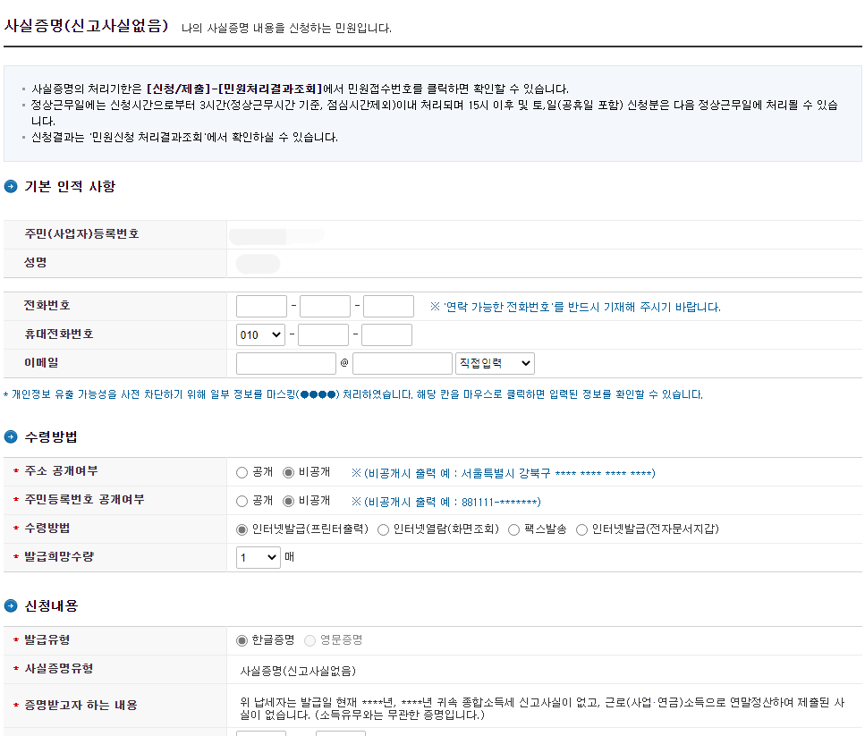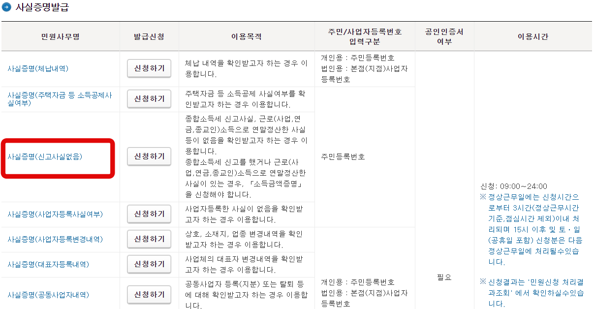 사실증명 신고사실 없음을 발급받아 봅시다