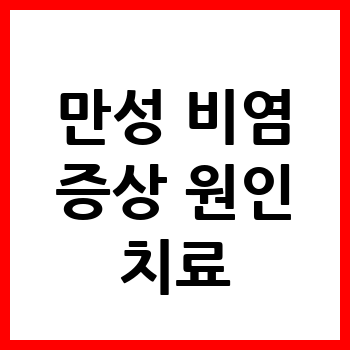 - 기타 관련 증상: 만성 비염은 재채기, 가려움증, 후두로의 점액이 흐름, 후각 감각 저하 등의 증상과 함께 나타날 수 있습니다.